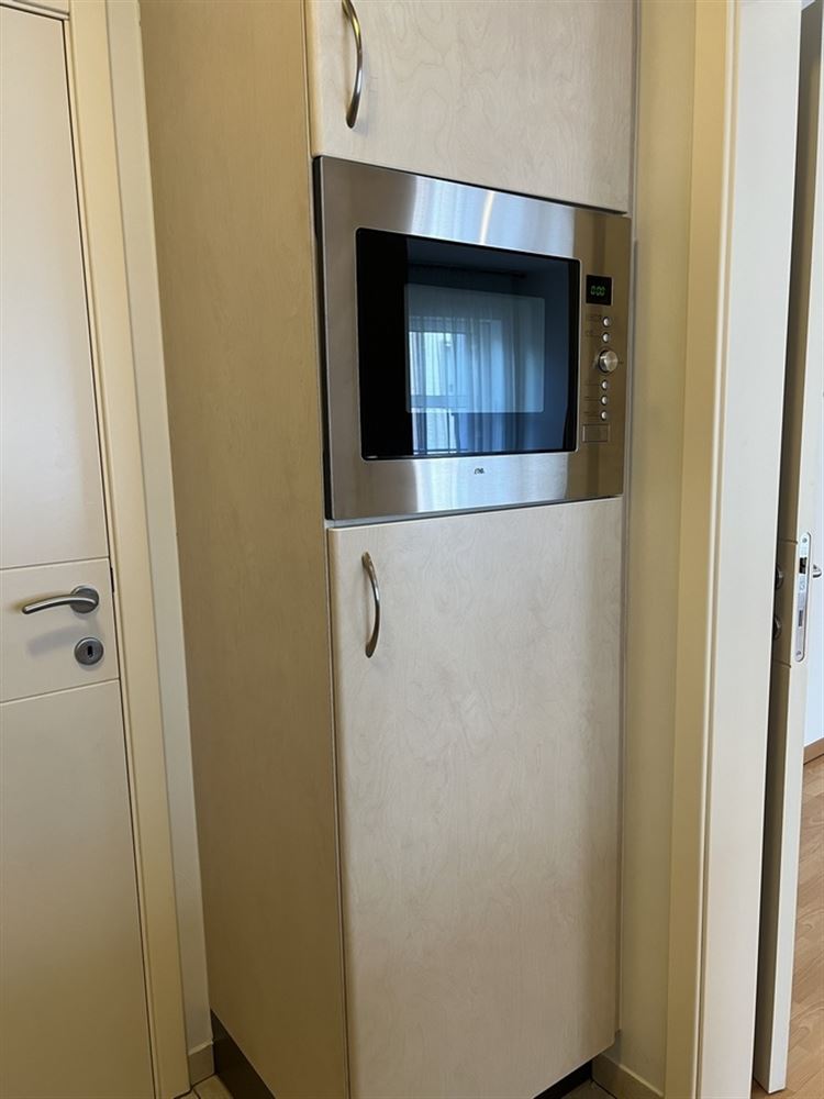 - Ingerichte open keuken uitgerust met een kunststof werkblad en volgende toestellen: vaatwasser, koelkast, oven, elektrisch kookplaat, afzuigkap en spoelbak met kraanwerk. Voldoende opbergruimte.