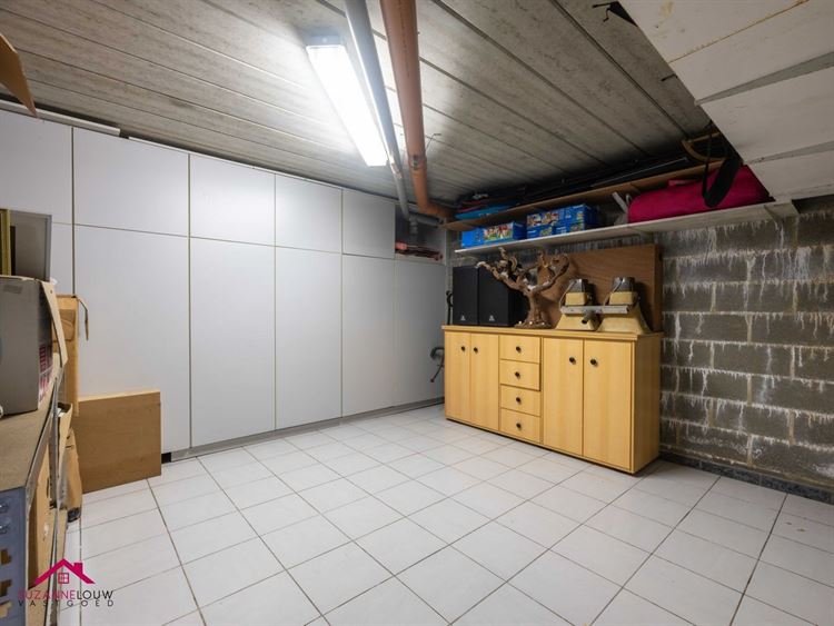 - Kelderverdieping: volledig onderkelderd met inpandige garage voor 2 wagens, met handmatig te bedienen poort.
