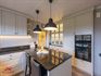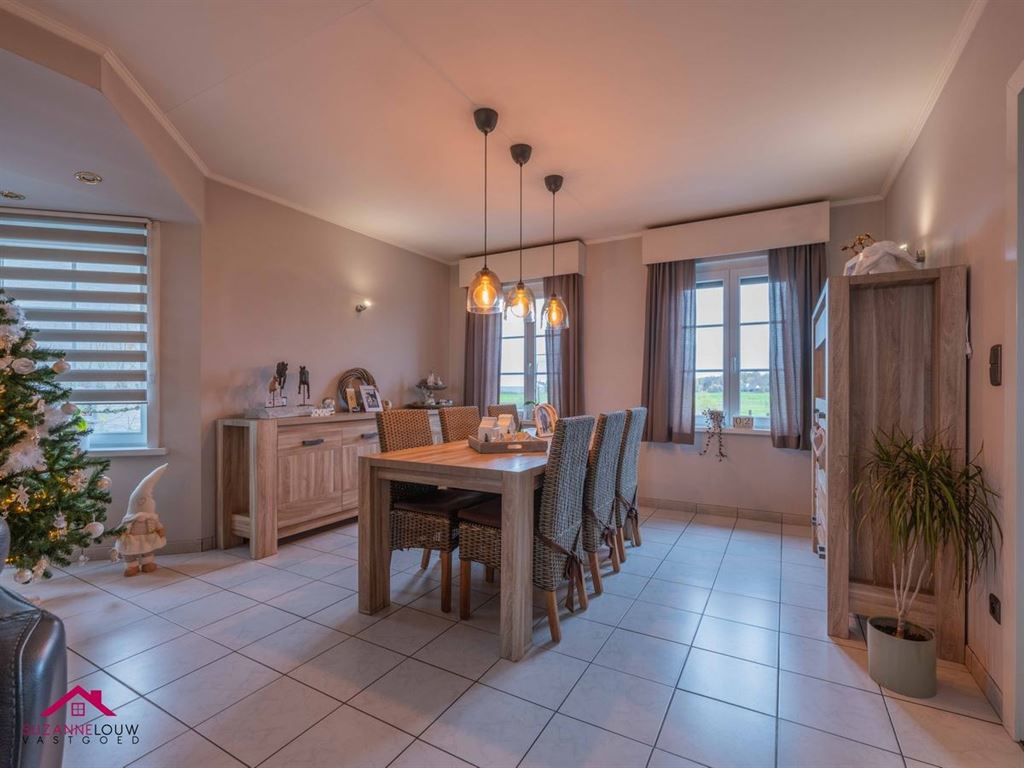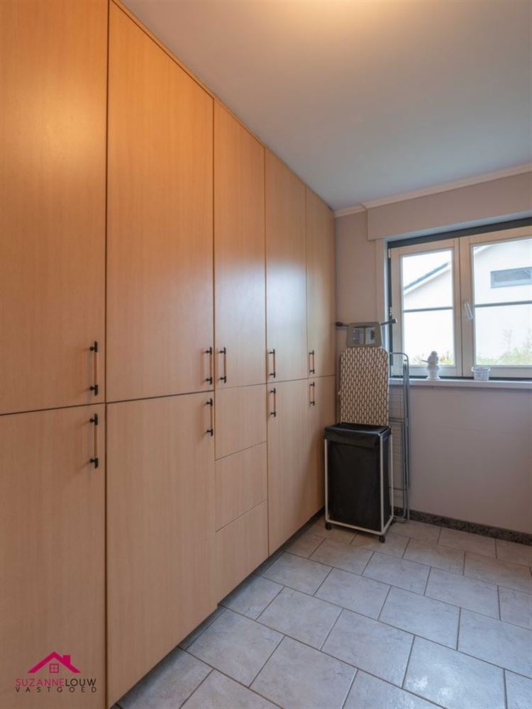 - Mooi geïnstalleerde keuken met vaste eettafel, voorzien van een granieten werkblad. Aanwezige toestellen: inductie kookplaat, afzuigkap, ingebouwde combi-oven en hogedruk stoomoven, koelkast, vaatwasser en een inox spoelbak met kraanwerk. Voldoende opbergmogelijkheden. Laminaat vloer. Toegang tot de achterinkom.