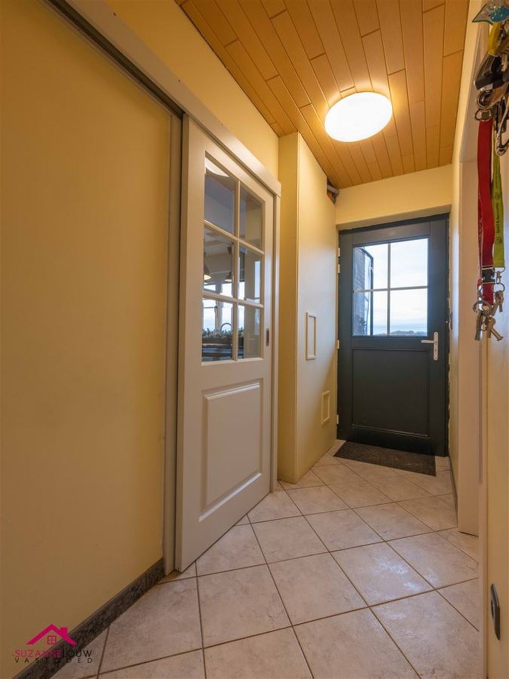- Inkomhal met toegang tot de verschillende vertrekken en trap naar bovenverdieping. Voldoende ruimte voor vestiaire. Keramische tegelvloer.