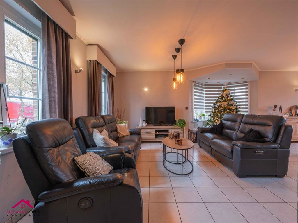 - Gezellige leefruimte met pelletkachel. Voldoende plaats voor het inrichten van een zit- en eethoek. De vele raampartijen aan de voor-, zij- en achtergevel zorgen voor veel lichtinval. TV- en telefoonaansluiting. Toegang tot de keuken. Keramische tegelvloer.