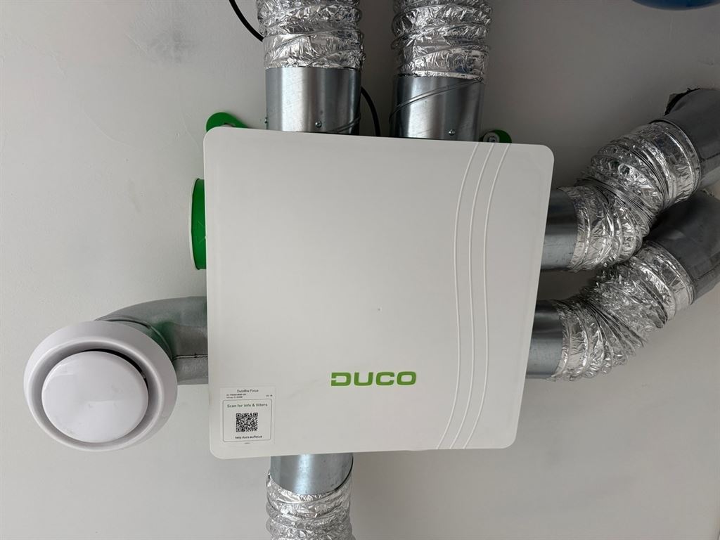 - Ventilatiesysteem type C met Renson Healthbox 3.0 en Smartzone (mechanische afvoer). Verse lucht via ventilatieroosters in buitenschrijnwerk.