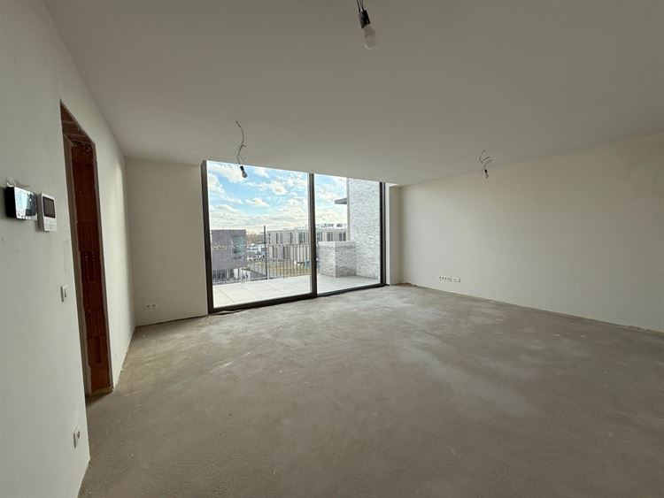 - Ruime leefruimte met open keuken (33,40m²). Voldoende plaats voor het creeëren van een zit- en eethoek. Keuken af te werken naar eigen smaak volgens lastenboek.