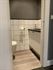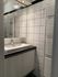 - Toilet: hangtoilet met fonteintje en kastruimte. Wandtegels tot bepaalde hoogte.