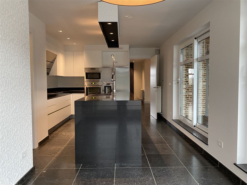 - Hoogwaardig afgewerkte keuken voorzien van alle comfort en voldoende ruimte voor het plaatsen van een eettafel! Ruim werkeiland met ontbijthoek. Aanwezige toestellen: Amerikaanse koelkast met vriesvak, microgolfoven, oven, vaatwasser, inductie kookplaat, afzuigkap en een dubbele inox spoelbak. Composiet werkblad. Toegang tot het deels overdekt zonneterras. TV-aansluiting.