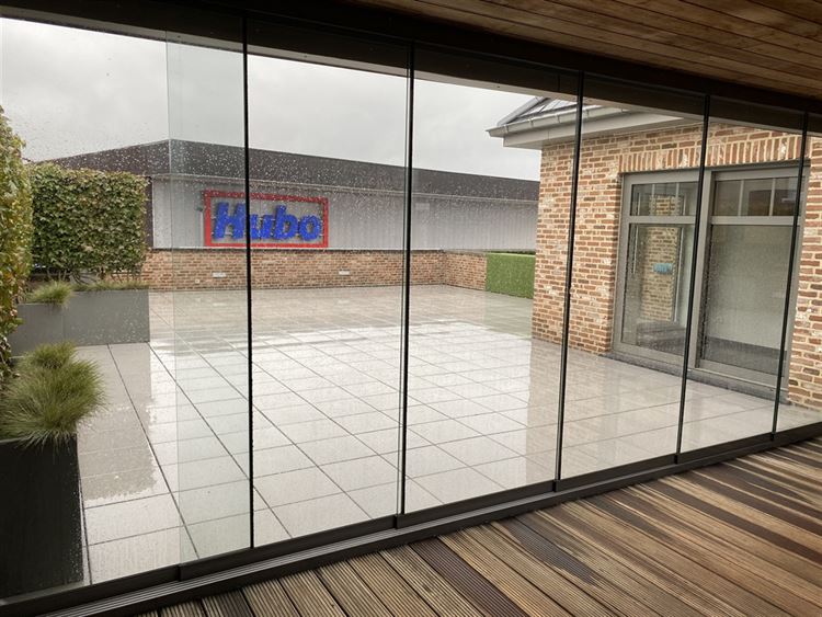 - Riant terras, deel overdekt en afsluitbaar met glazen schuifwanden, zuidelijk georiënteerd, voorzien van een stopcontact en verlichting.