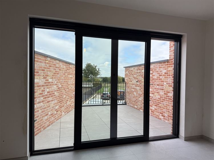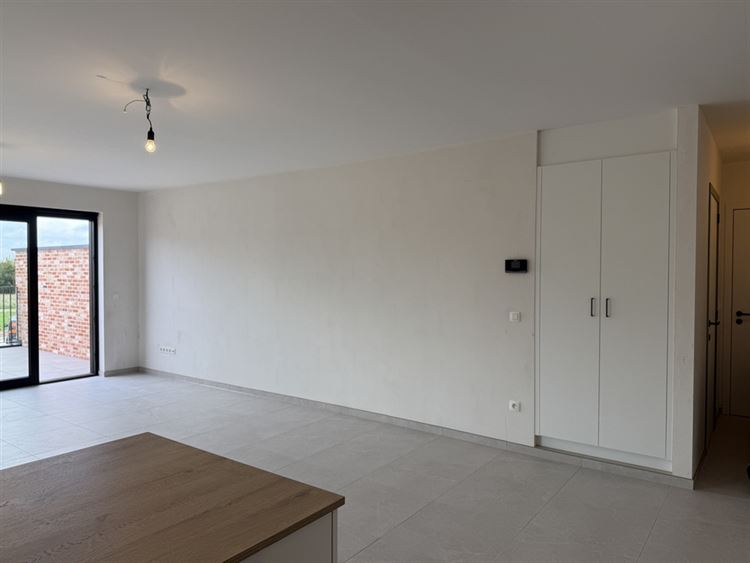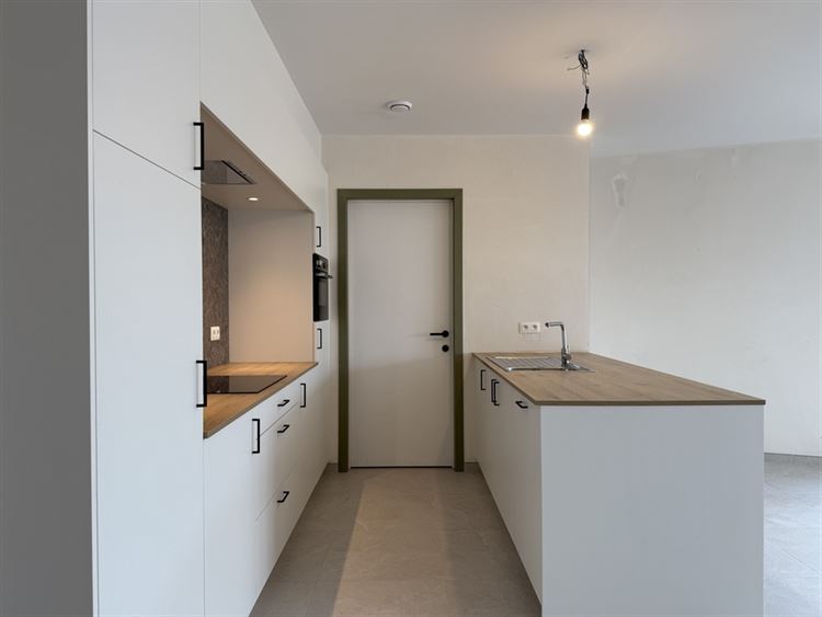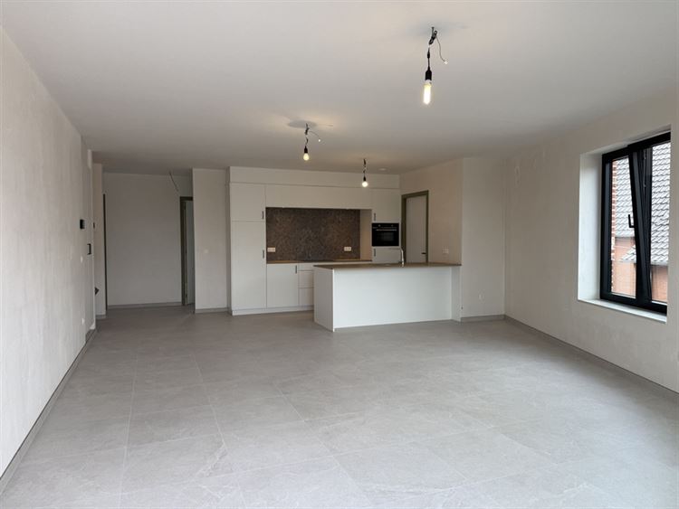 - Gezellige leefruimte met open keuken. Voldoende plaats voor het inrichten van een zit- en eethoek. Veel lichtinval dankzij de grote raampartij aan de achterzijde, uitgevend op het terras.