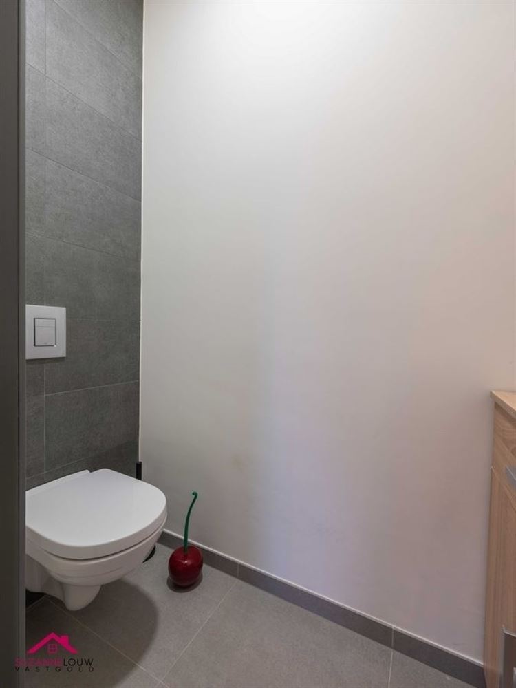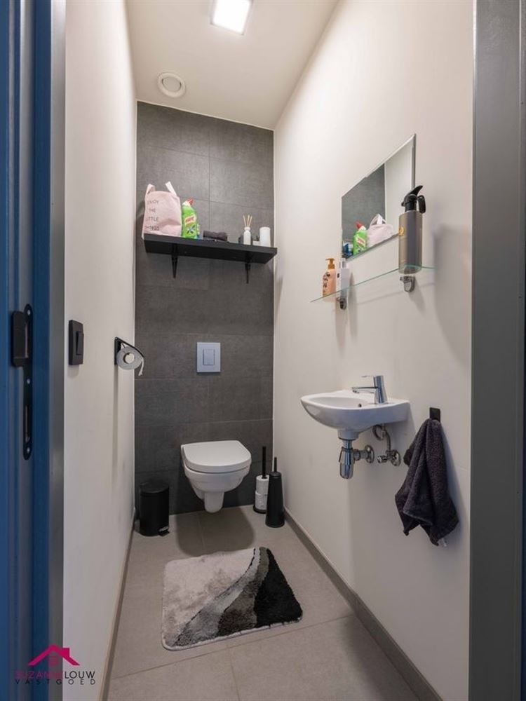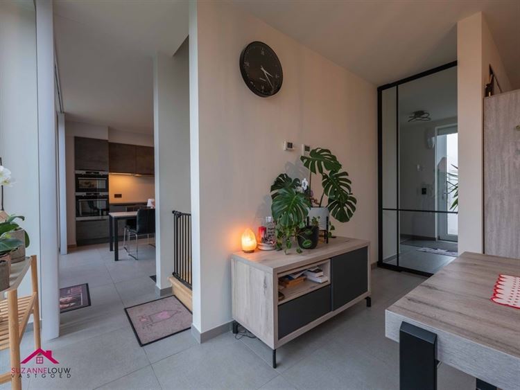 - Lichte inkomhal met toegang tot het gastentoilet, de berging en de open leefruimte-keuken.