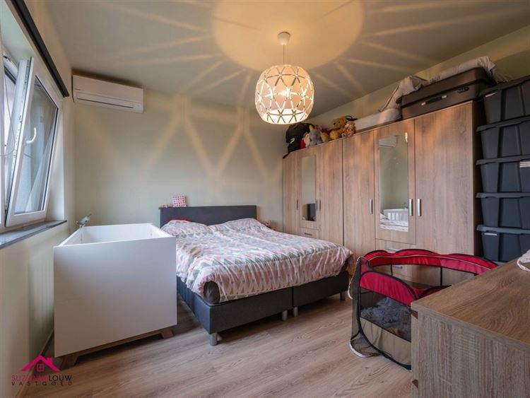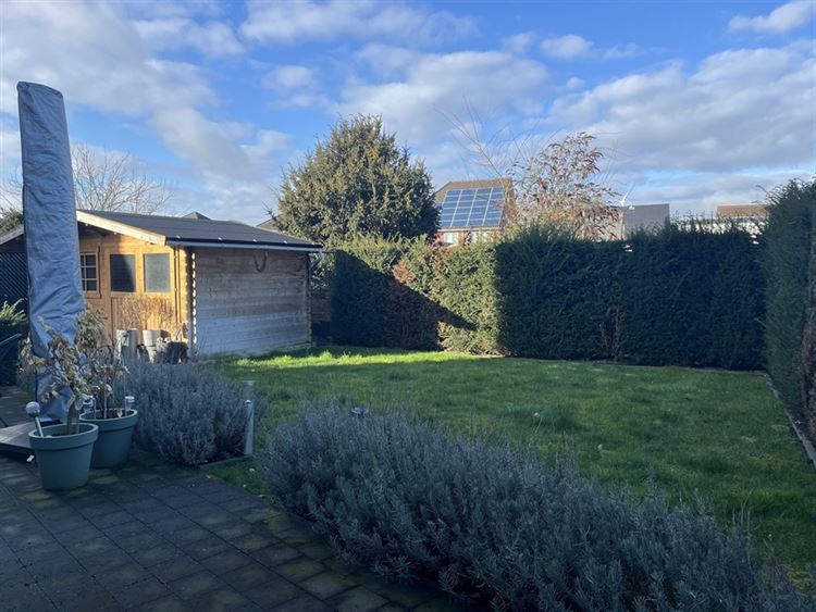 De oprit en parkeerplaats voor de woning werd beklinkerd. Via een voetgangerspoortje in de voortuin heeft u toegang tot de achtertuin, die is voorzien van een gazon, sierbeplanting en een aangelegd terras.