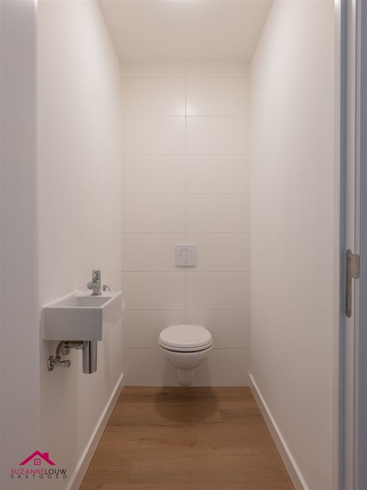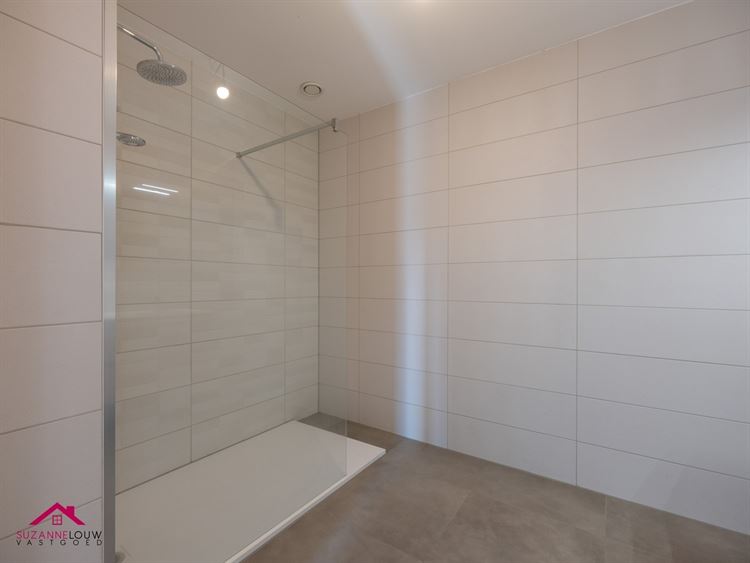 - Ingerichte badkamer, voorzien van badkamermeubel met soft-close laden met dubbele lavabo, spiegel met verlichting en inloopdouche. Wandtegels tot plafondhoogte. Keramische tegelvloer.