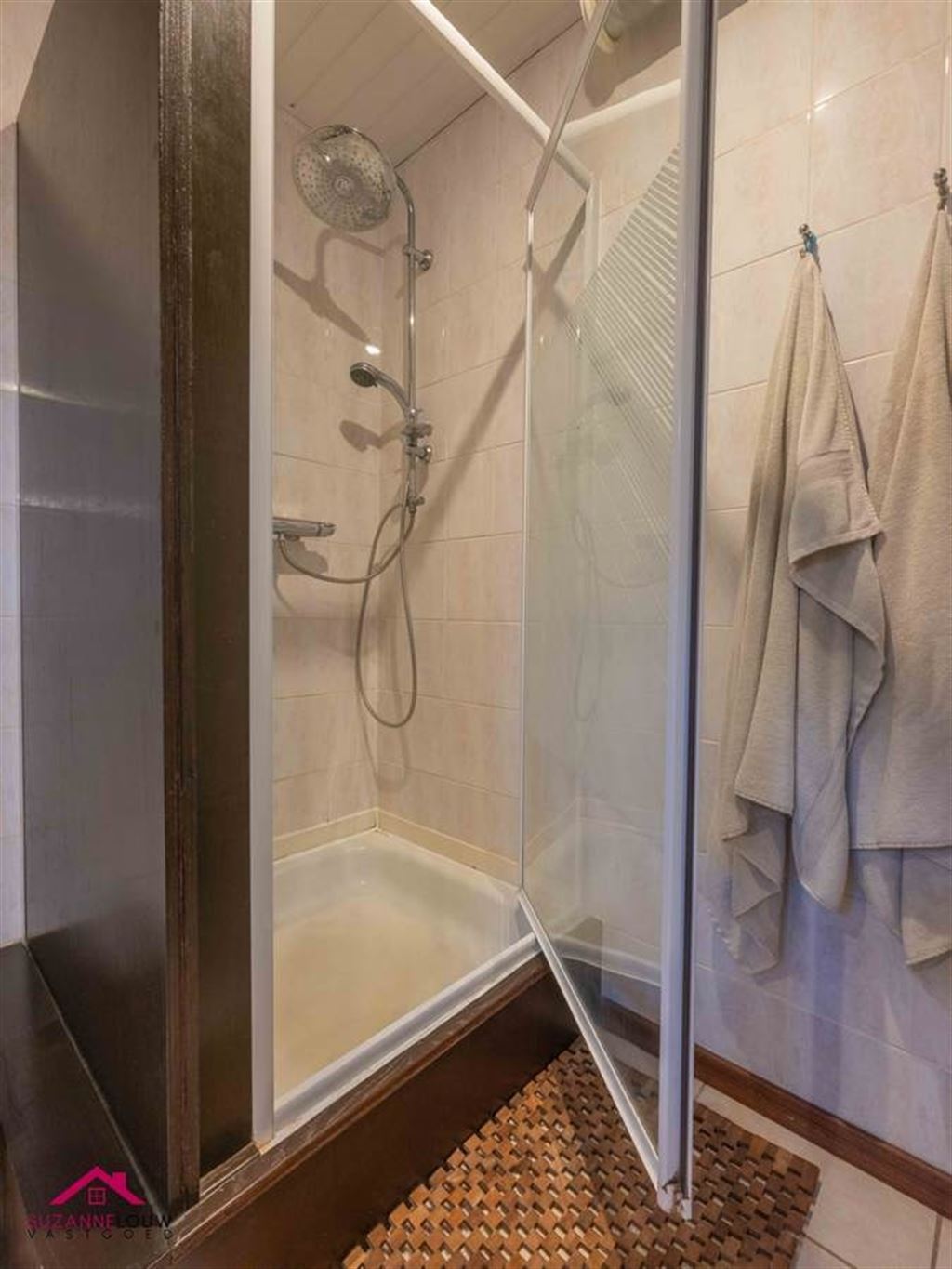 - Badkamer 2, uitgerust met badkamermeubel met lavabo en spiegel, douche en toilet. Wandtegels tot plafondhoogte. Keramische tegelvloer.