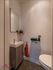- Gastentoilet met toiletmeubel, lavabo en spiegel. Keramische tegelvloer.