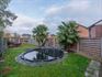 De achtertuin van de woning werd aangelegd met gazon en beplanting. Hier bevindt zich tevens een verwarmd buitenzwembad, een siervijver en een gezellig aangelegd terras.