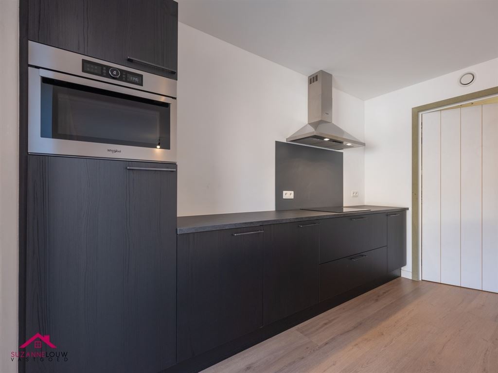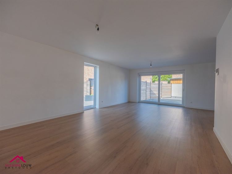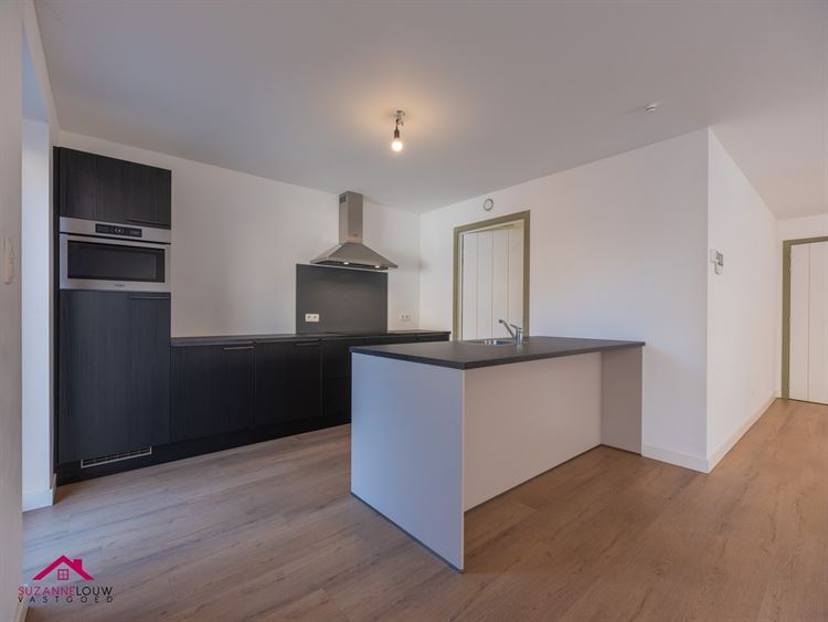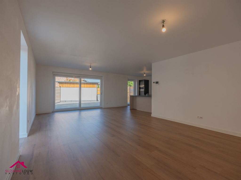 - Gezellige leefruimte met open keuken. Meer dan voldoende plaats voor het inrichten van een zit- en eethoek. Veel lichtinval dankzij de grote raampartijen. Toegang tot het terras via de grote schuifraam. Open keuken voorzien van melanine werkblad en uitgerust met volgende toestellen: keramische kookplaat, afzuigkap, inox spoelbak met kraanwerk, koelkast en energiezuinige vaatwasser. Keuken is volledig voorzien van soft close laden en deuren. Toegang tot de achterliggende berging.