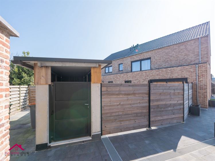 - Ruim terras (49,50m²), aangelegd met klinkers en volledig omheind met houten schutting.