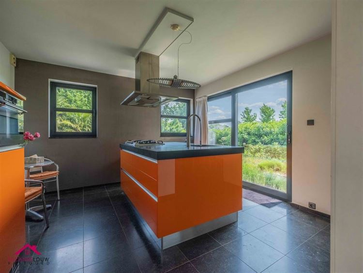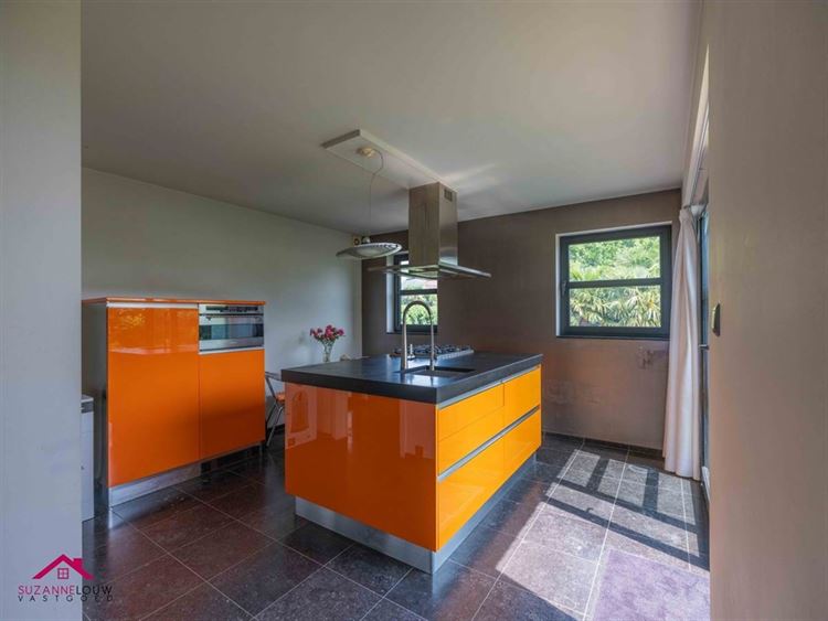 - Retro ingerichte keuken voorzien van: gasfornuis, afzuigkap, oven, vaatwasser, Amerikaanse koelkast en een spoelbak met kraanwerk. Voldoende opbergruimte. Genietend van zicht over de tuin! Toegang tot de berging/wasplaats. Keramische tegelvloer.
