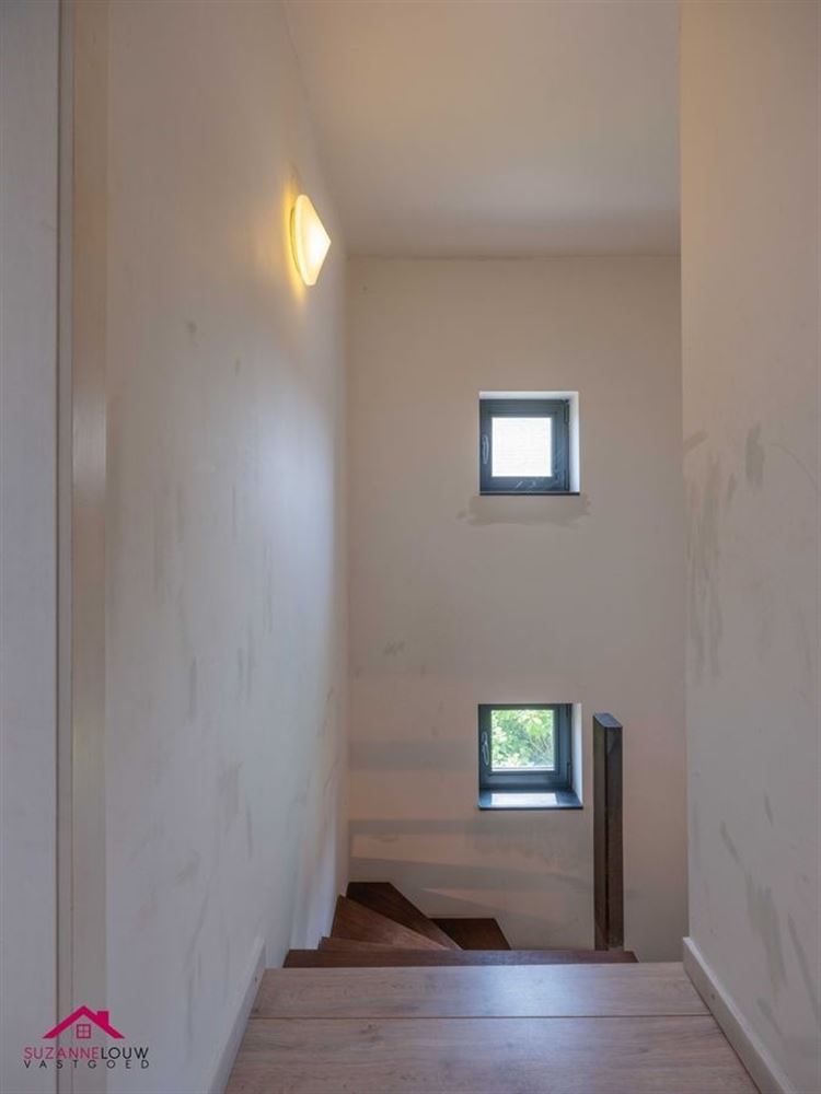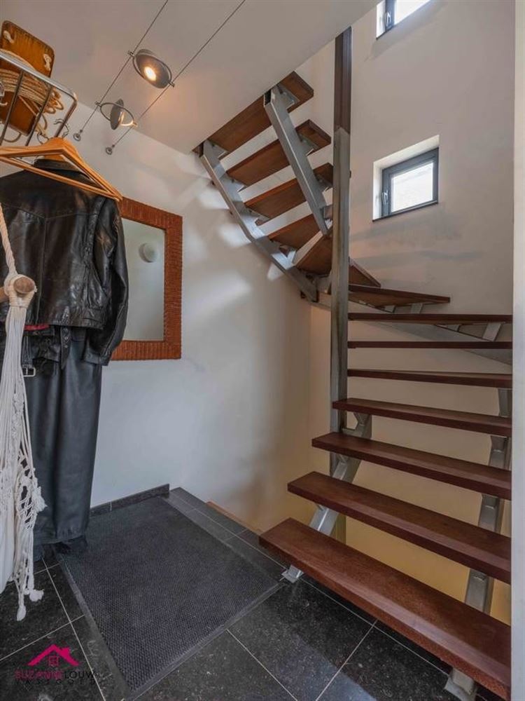 - Ruime inkomhal met trap naar verdieping en kelder. Voldoende ruimte voor vestiaire. Toegang tot de diverse ruimtes.