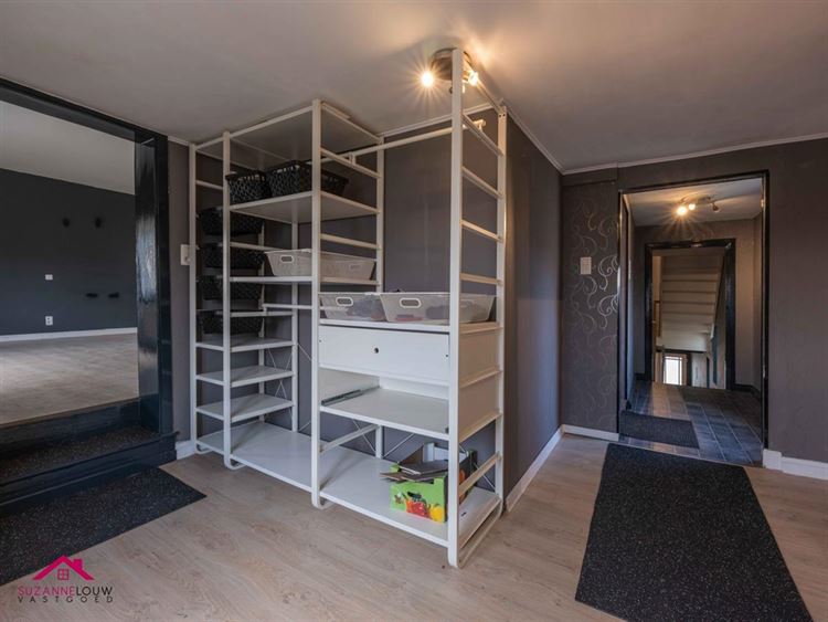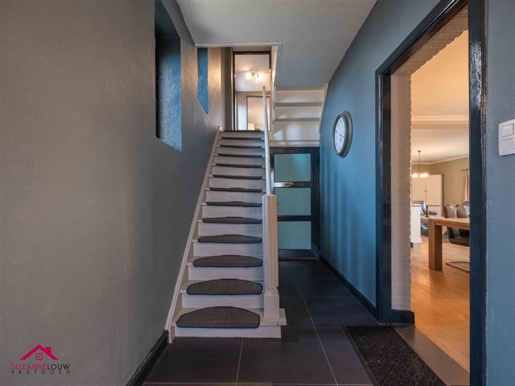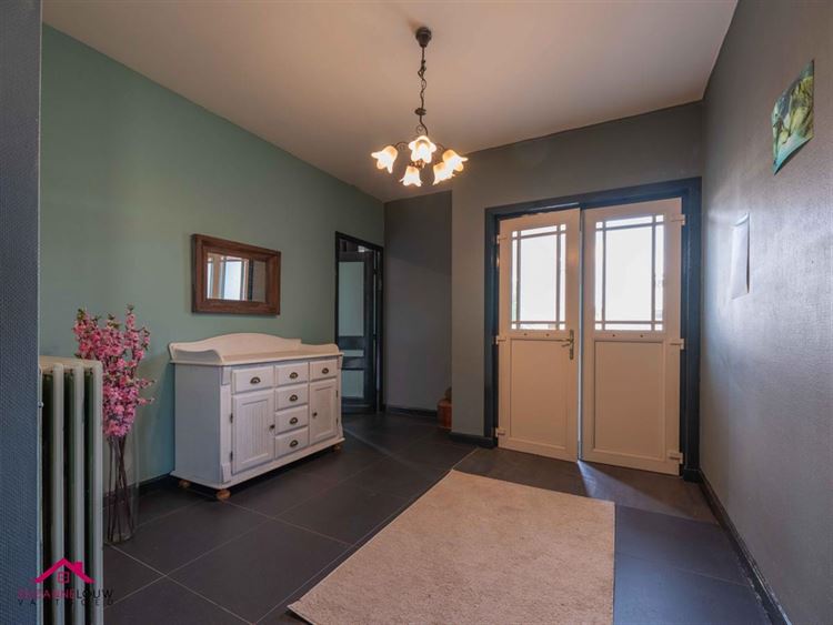 - Zeer ruime inkomhal met trap naar verdieping. Voldoende ruimte voor vestiaire. Toegang tot de diverse ruimtes. Keramische tegelvloer.