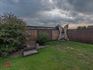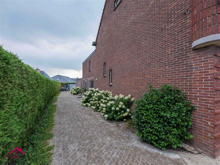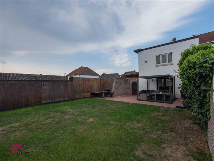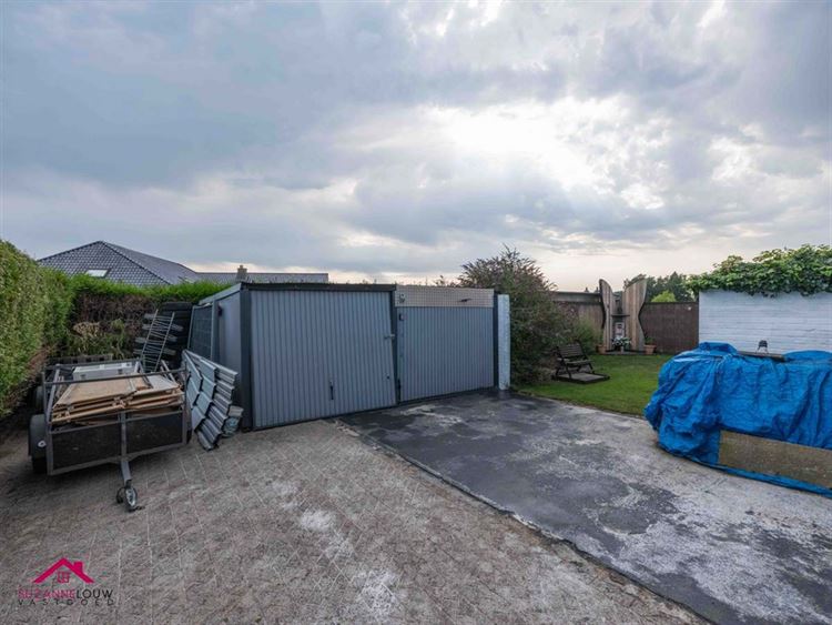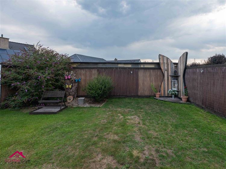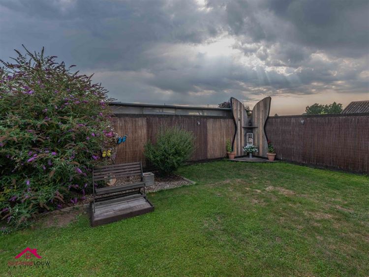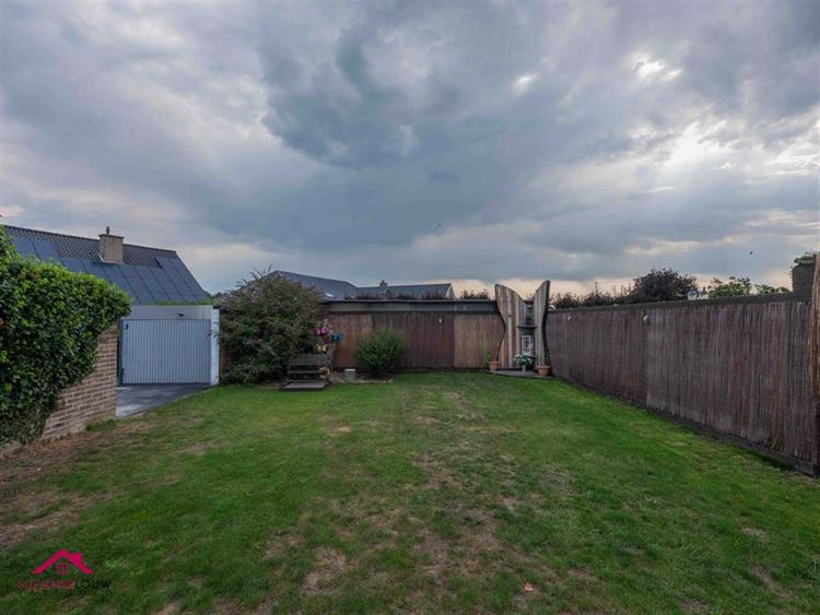De achtertuin van de woning werd aangelegd met gazon en beplanting. Hier bevindt zich tevens een vrijstaande garage die plaats biedt aan zeker 2 wagens.
