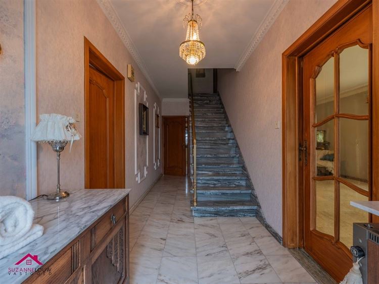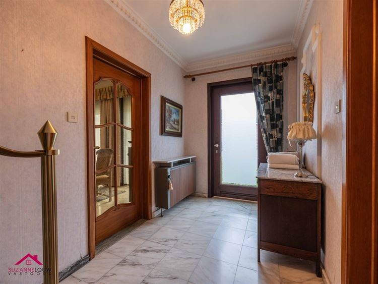 - Inkomhal met toegang tot slaapkamer 1, de leefruimte en trap naar de verdieping. Uitgerust met een marmeren tegelvloer.