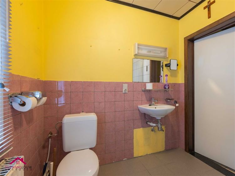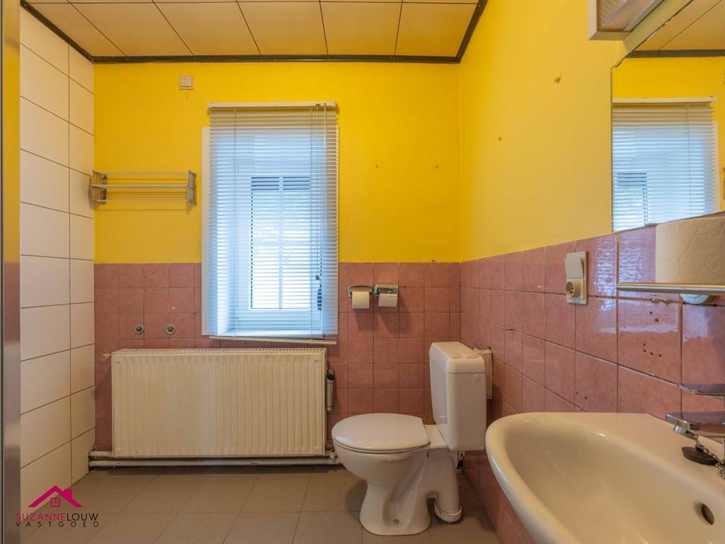 - Badkamer, voorzien van lavabo, inloopdouche en toilet. Wandtegels tot bepaalde hoogte.