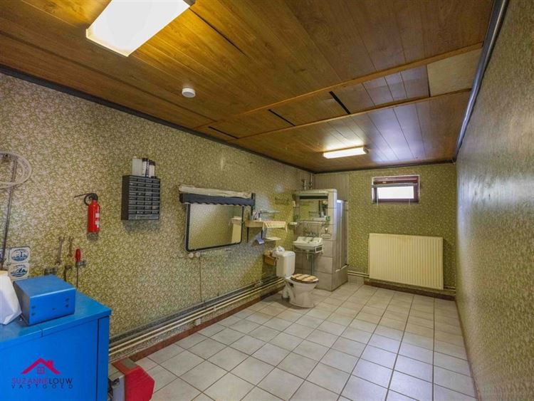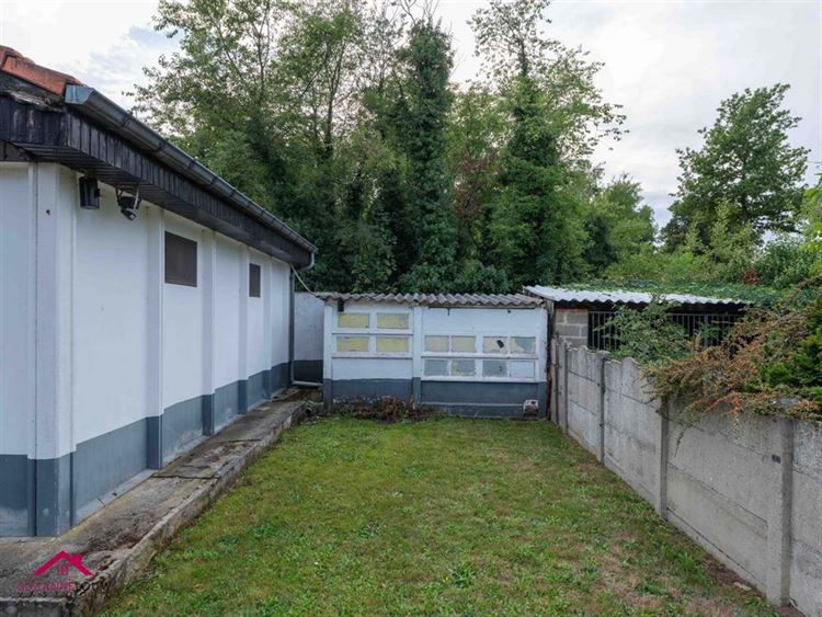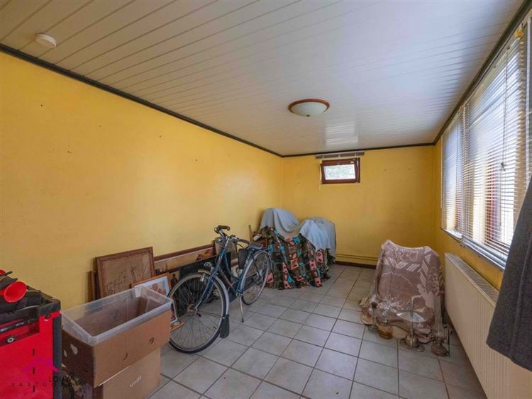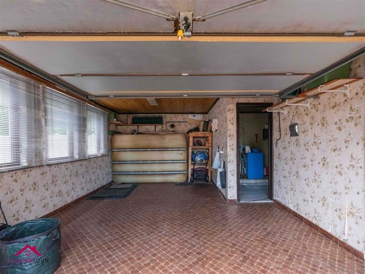 De oprit tot aan de vrijstaande garage (+/- 90m²), werd aangelegd met klinkers, de wandelpaden rondom de woning en het terras met een betontegel. Tevens vinden we achter de woning nog een praktische buitenberging terug.