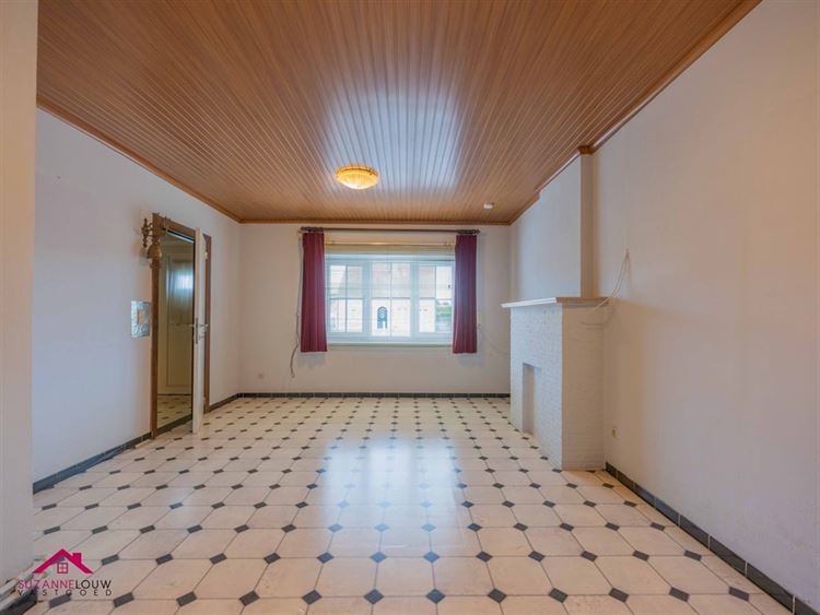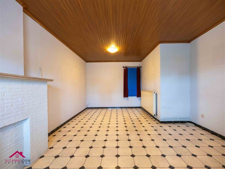 - Leefruimte met voldoende plaats voor het inrichten van een zit- en eethoek, uitgerust. De leefruimte heeft contact met zowel de straat- als de achterzijde, wat zorgt voor een ruimtelijk gevoel en veel lichtinval. Linoleum vloerbekleding.