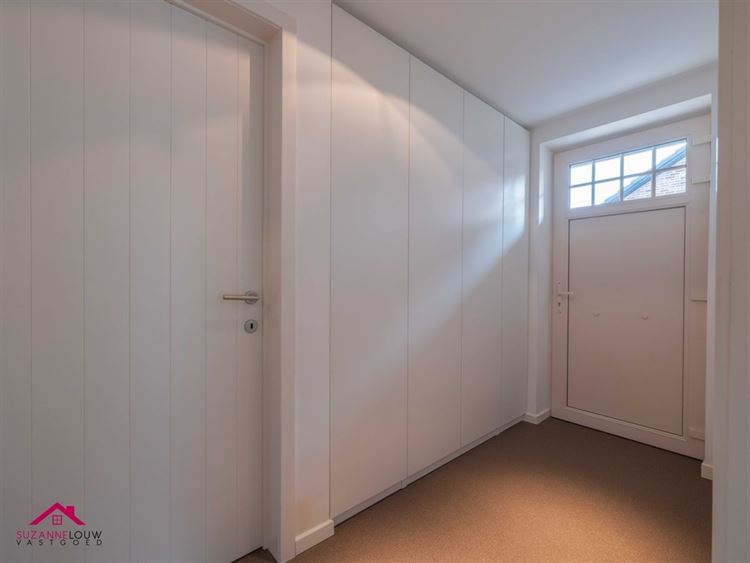 - Inkomhal met ruimte voor vestiaire. Toegang tot de verschillende vertrekken. Voorzien van op maat gemaakte kastenwand.