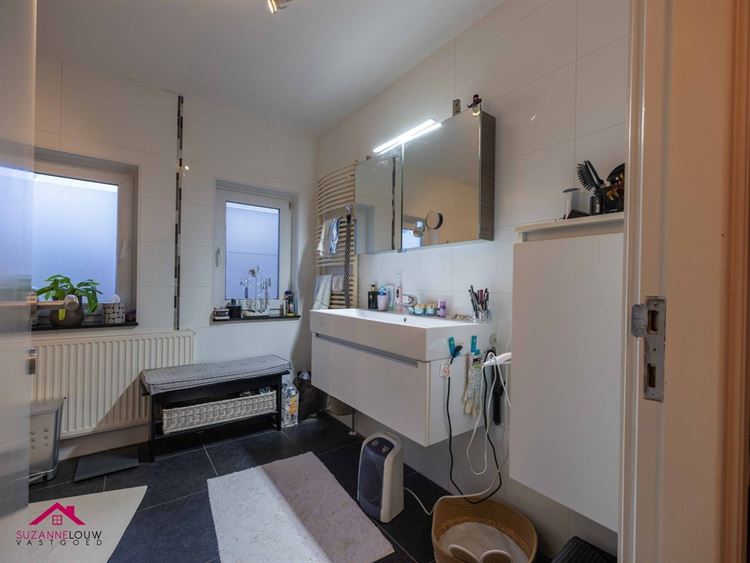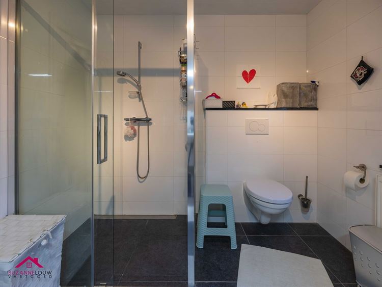 - Ingerichte badkamer, voorzien van badkamermeubel met lavabo, spiegelkast met verlichting, inloopdouche en toilet. Wandtegels tot plafondhoogte. Handdoekradiator. Keramische tegelvloer.