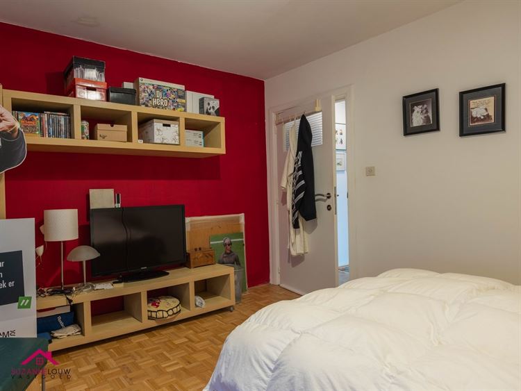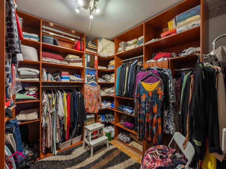 - Slaapkamer 1, momenteel in gebruik als dressing, voorzien van op maat gemaakte kastenwanden. Parket vloerbekleding.