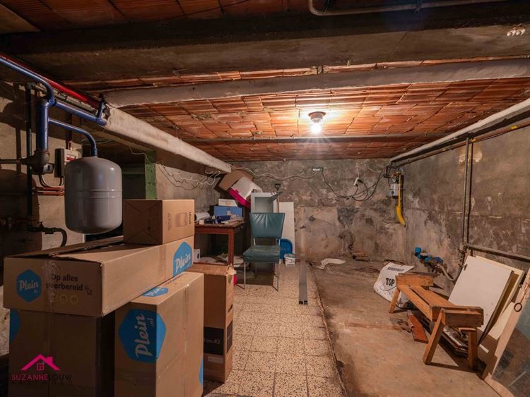 - De woning is volledig onderkelderd, bereikbaar langs binnen en buiten, bestaande uit een gedeelte kruipkelder (onder de keuken) en een gedeelte bruikbare kelder, opgedeeld in diverse ruimtes: