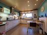 - Praktische, ruime keuken, voorzien van een keramische tegelvloer, een melanine werkblad en volgende toestellen: dubbele inox spoelbak met kraanwerk en afzetvlak, keramische kookplaat met afzuigkap, oven en vaatwasser. Meer dan voldoende ruimte voor het plaatsen van een eettafel. Wandtegels tussen onder- en bovenkasten. Zicht op de achtertuin.