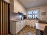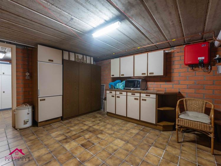 - Ingerichte keuken, vernieuwd in 2019, met melanine werkblad en voorzien van volgende toestellen: inductie kookplaat, afzuigkap, oven, combi-oven, koelkast, vaatwasser en spoelbak met kraanwerk en afzetvlak. Voldoende opbergruimte dankzij de vele kasten. Het werkblad werd doorgetrokken tussen onder- en bovenkasten. Hier werd een vaste eettafel voorzien.