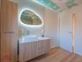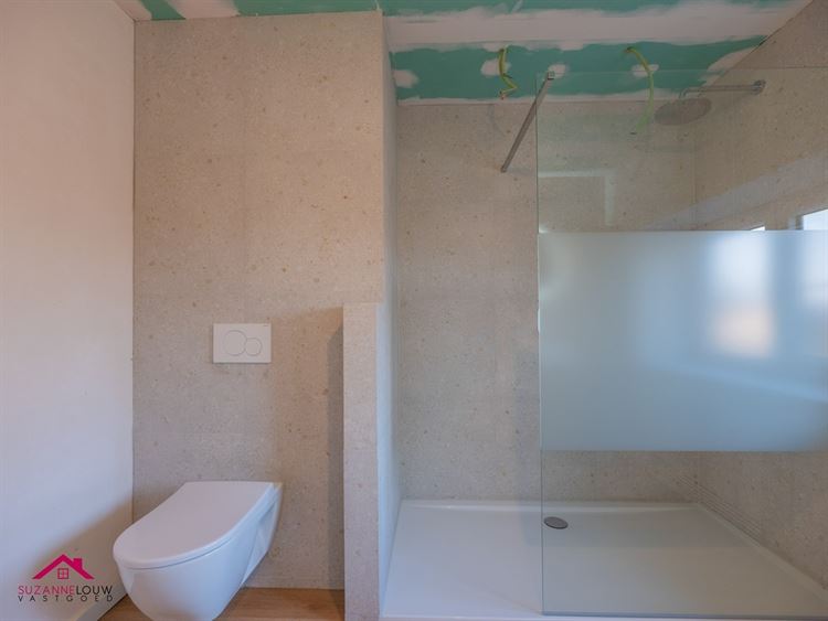 - Ingerichte badkamer, voorzien van badkamermeubel met lavabo, anti-condens spiegel met verlichting, kolomkast, inloopdouche en toilet. Het badkamermeubel is voorzien op plaatsing van een 2de lavabo.