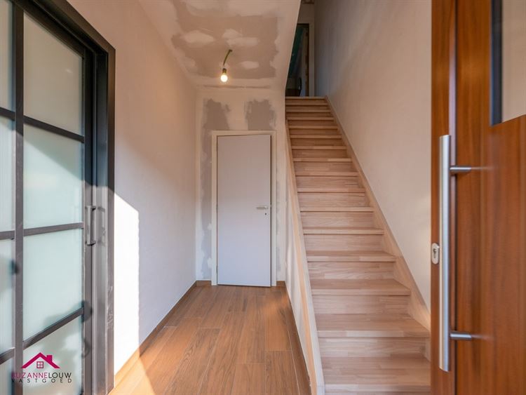 - Inkomhal met toegang tot het gastentoilet en de open leefruimte-keuken en met trap naar de verdieping.