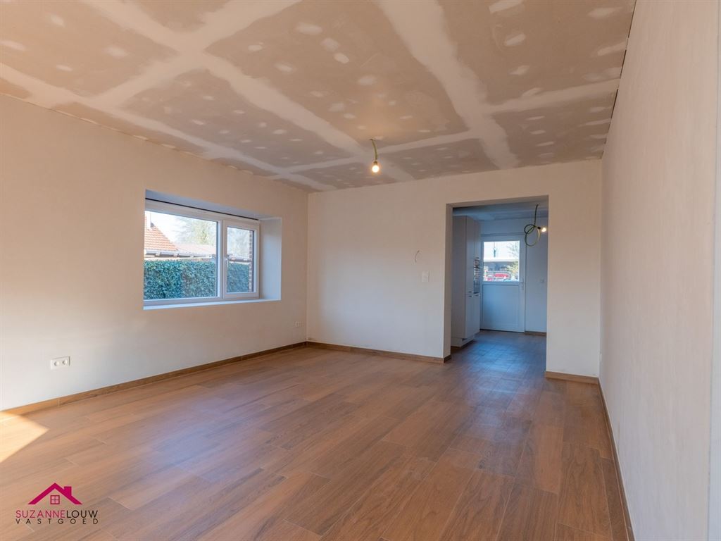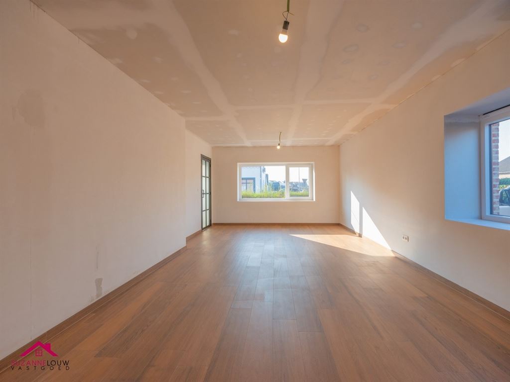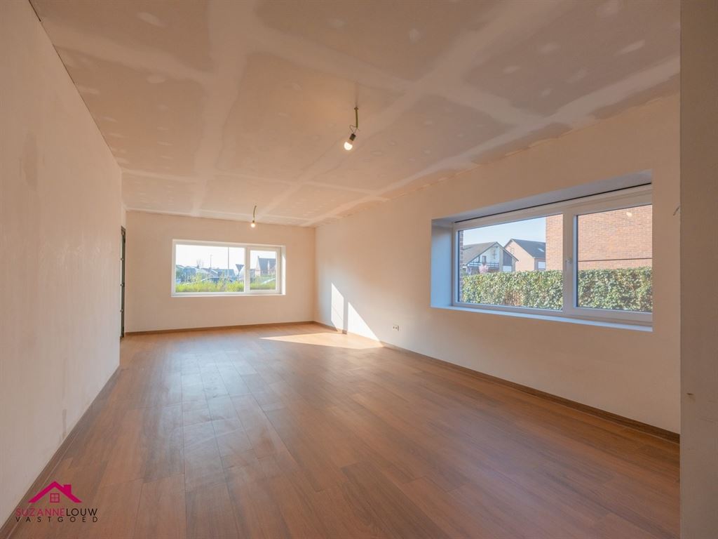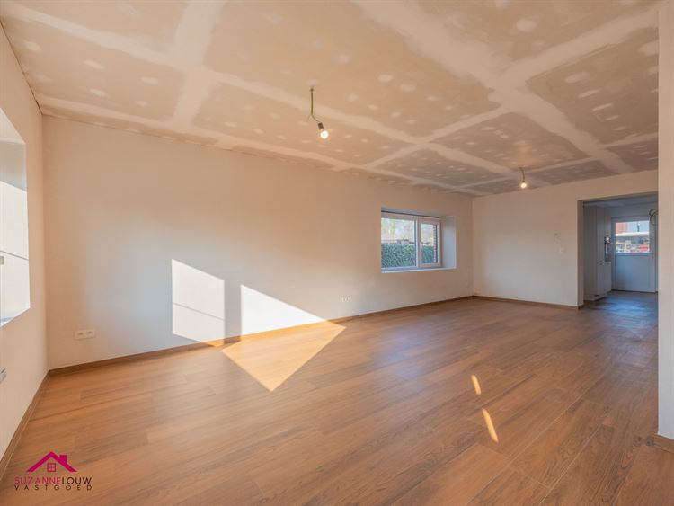 - Gezellige open leefruimte met meer dan voldoende plaats voor het inrichten van een zit- en eethoek. Veel lichtinval dankzij de raampartijen in voor- en zijgevel. Directe toegang tot de keuken.