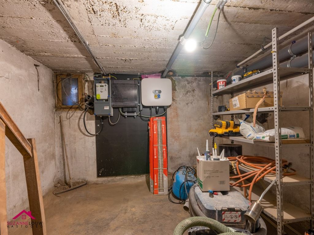 - 2 bergingen, waarvan eentje (rechts) met toegang tot de kelderverdieping. Hier bevindt zich ook de aansluiting voor de wasmachine. Technische ruimte.
