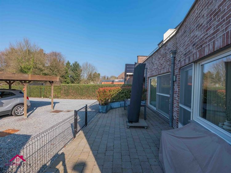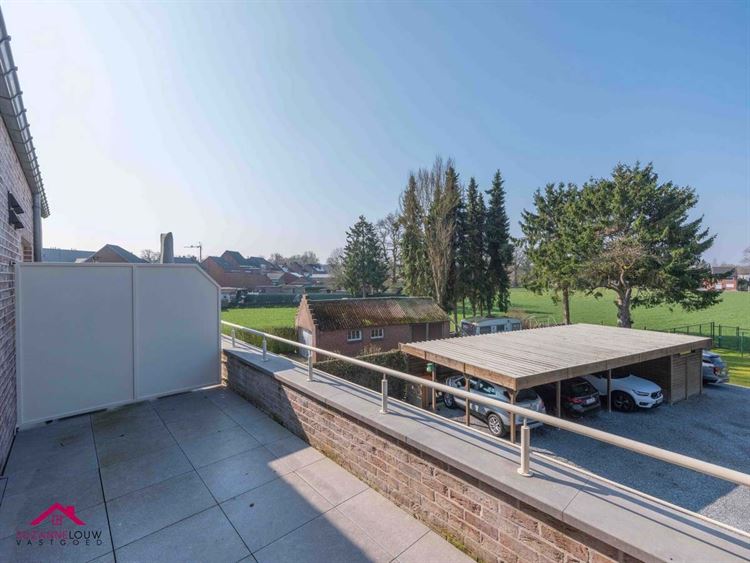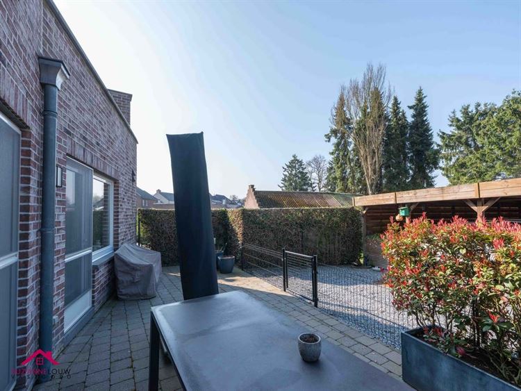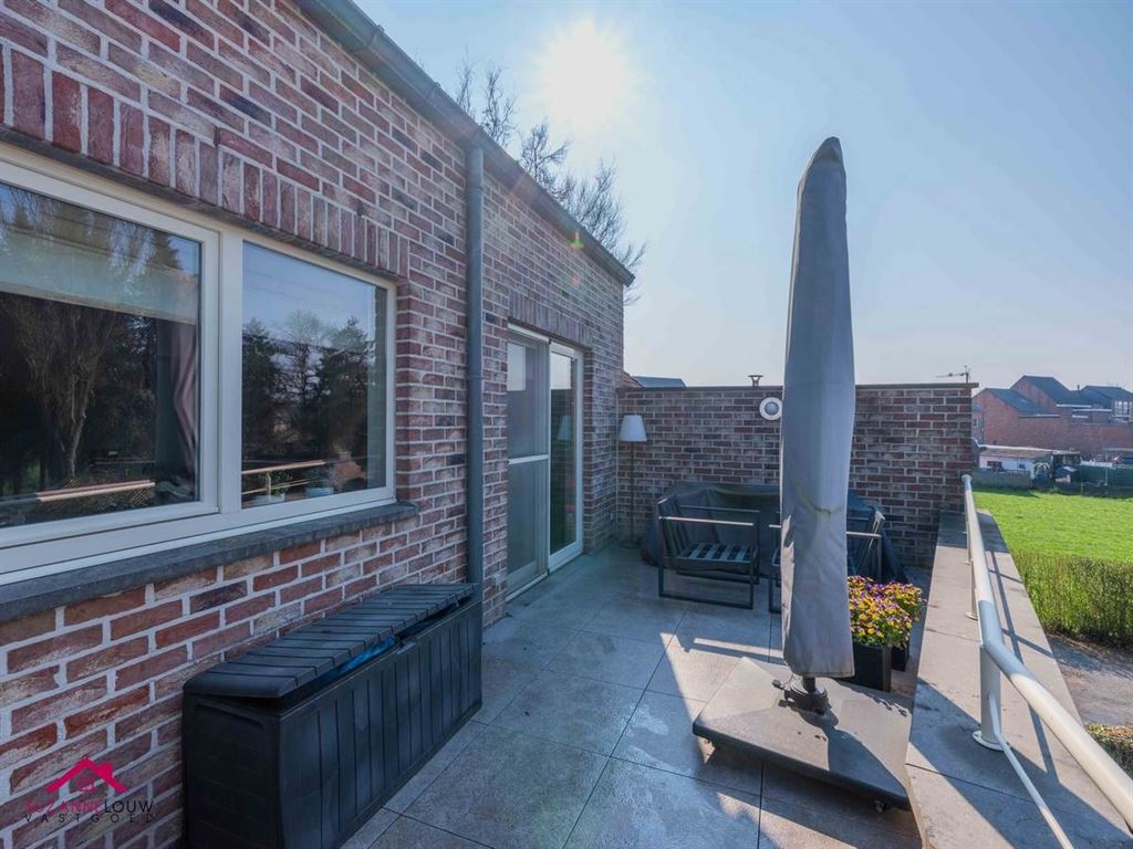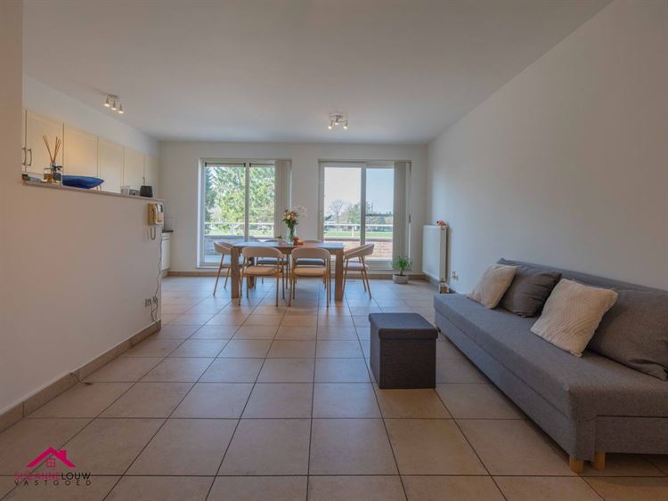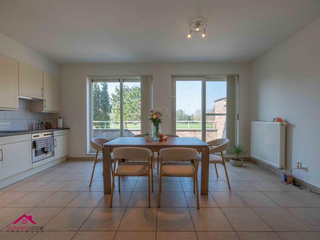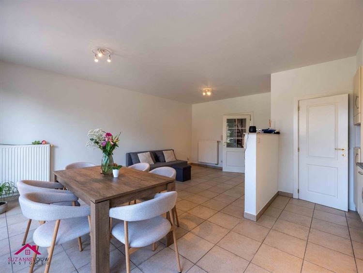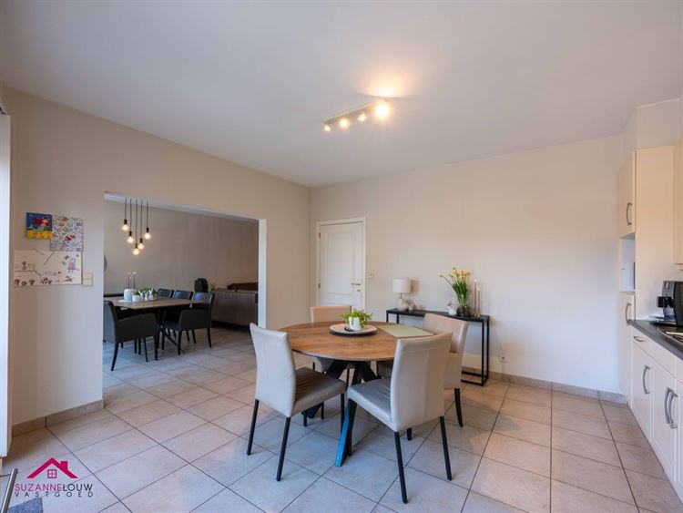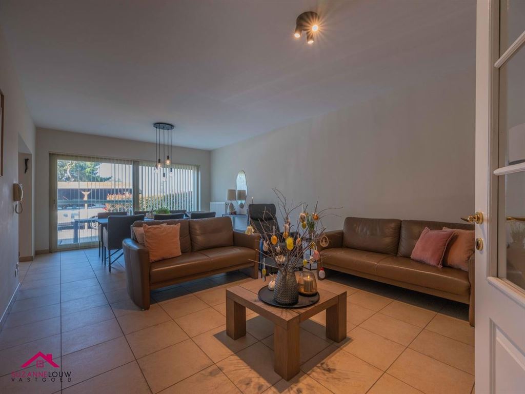 - Gezellige leefruimte met voldoende plaats voor het inrichten van een zit- en eethoek. Veel lichtinval dankzij de grote raampartij aan de achterzijde, dewelke uitgeeft op het terras. Directe toegang tot de keuken.
