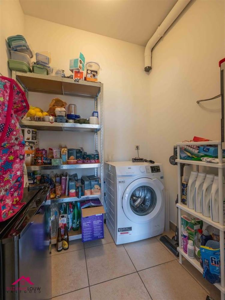 - Berging/wasplaats met aansluiting voor wasmachine.