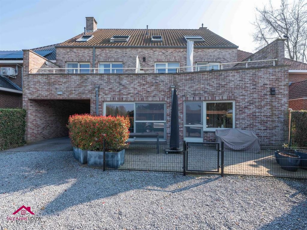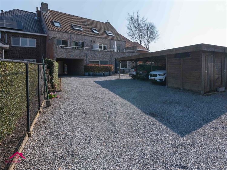 De oprit naar de achterzijde werd beklinkerd en is voorzien van een geautomatiseerde toegangspoort. Achter het gebouw bevinden zich 3 carports met een tuinberging, evenals een klein stukje gemeenschappelijke tuin.