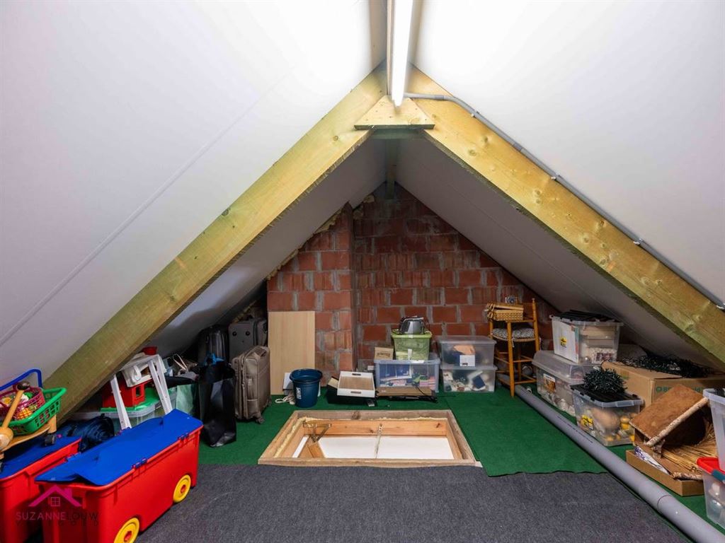 Te bereiken vanuit de nachthal via luik met vlizotrap. Ideaal als extra bergruimte.