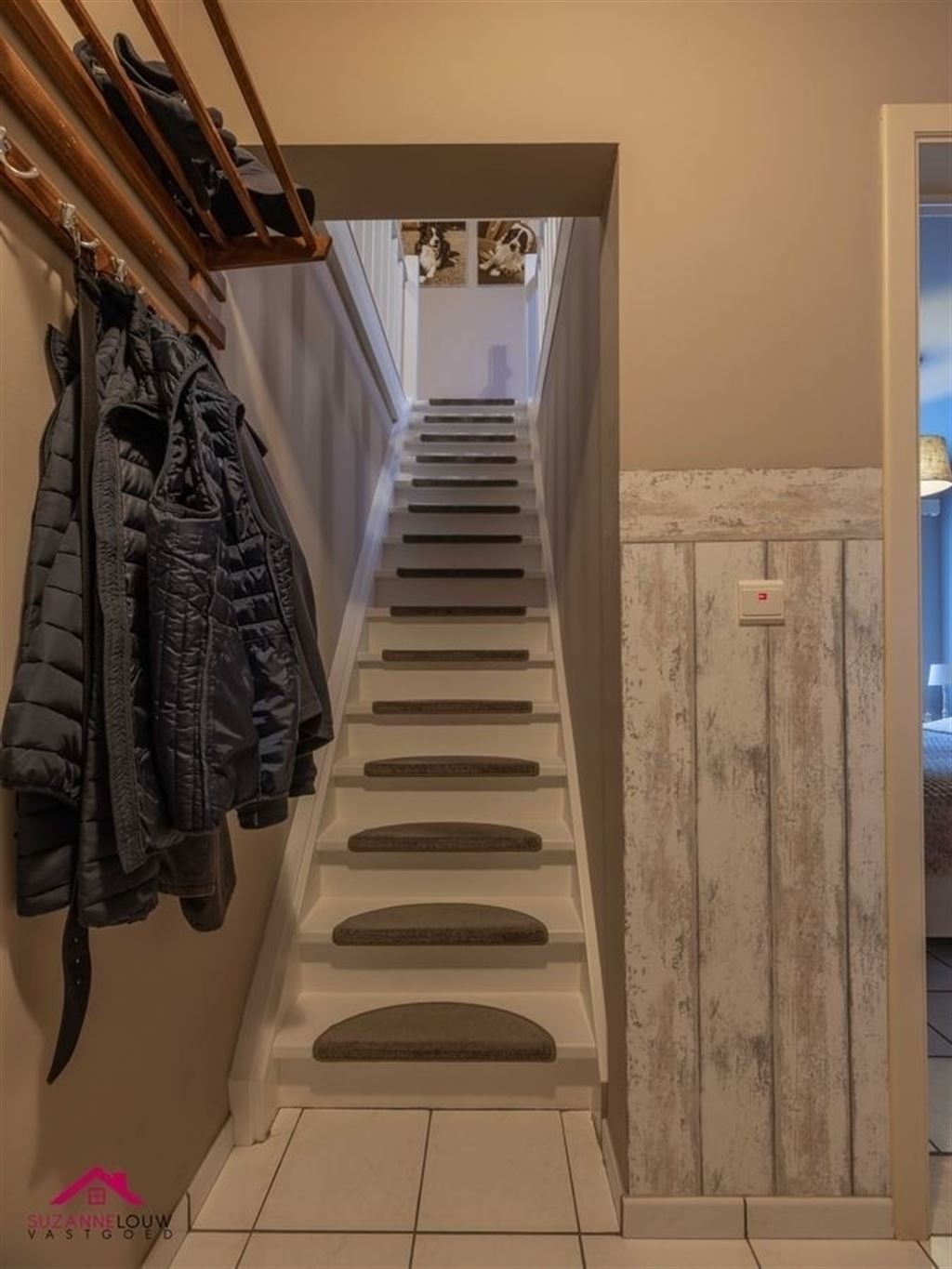 - Inkomhal met ruimte voor vestiaire. Toegang tot de verschillende vertrekken.