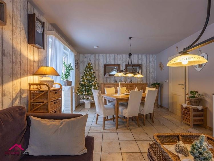 - Gezellige leefruimte met voldoende plaats voor het inrichten van een zit- en eethoek. Meer dan voldoende lichtinval dankzij de vele raampartijen. Voorzien van een pelletkachel.
