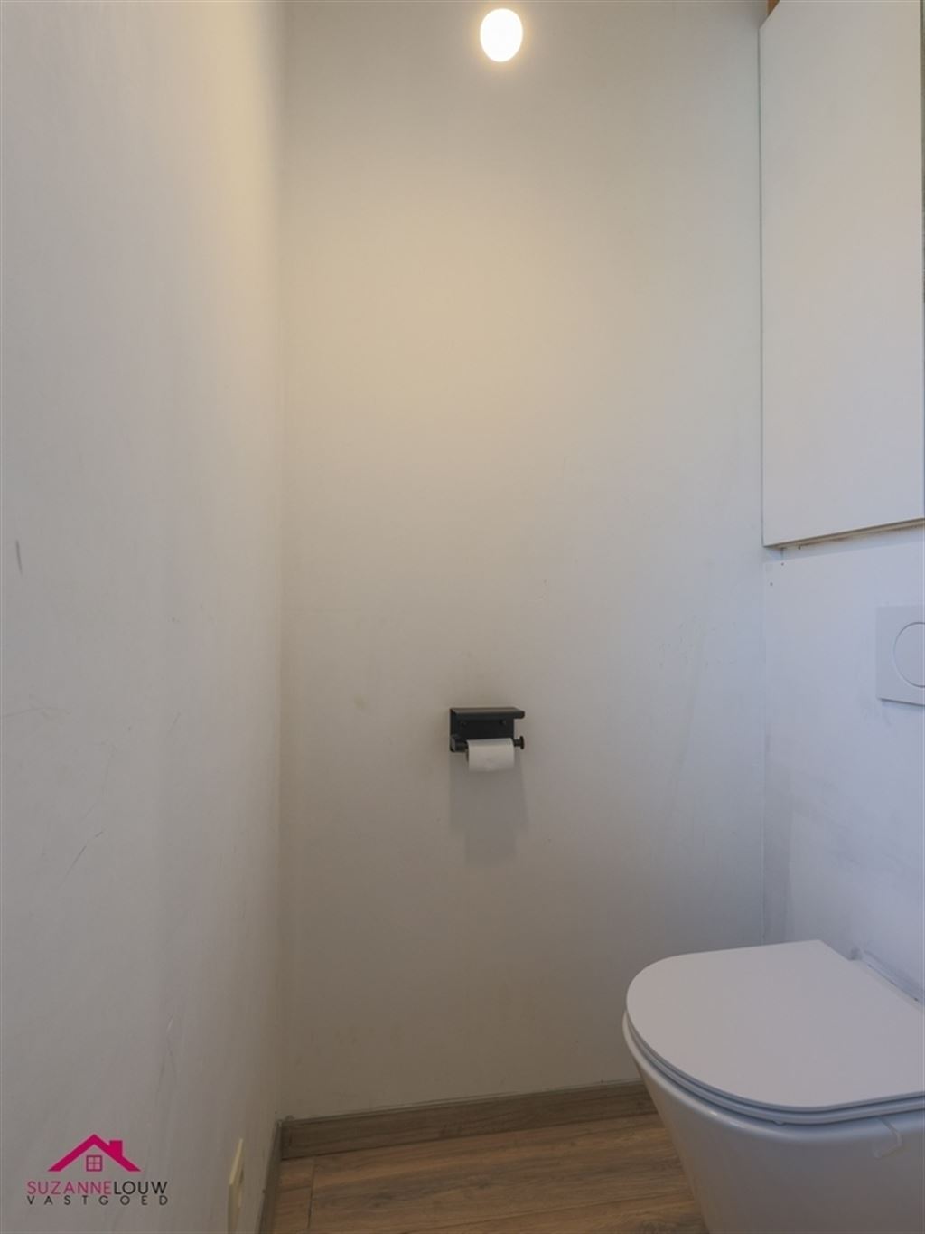 De gehele bovenverdieping, met uitzondering van de badkamer, werd uitgerust met een laminaatvloer.