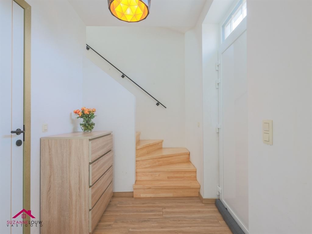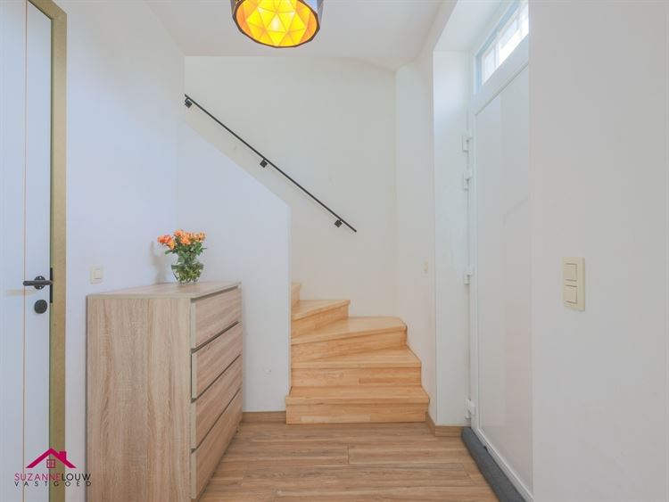 - Inkomhal met trap naar verdieping. Toegang tot het gastentoilet en de open leefruimte-keuken.