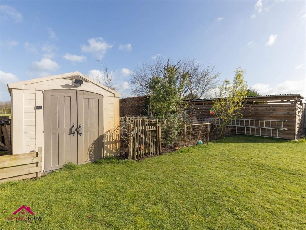 Tevens vinden we in de achtertuin nog een zeer praktische tuinberging en een tuinhuisje terug.